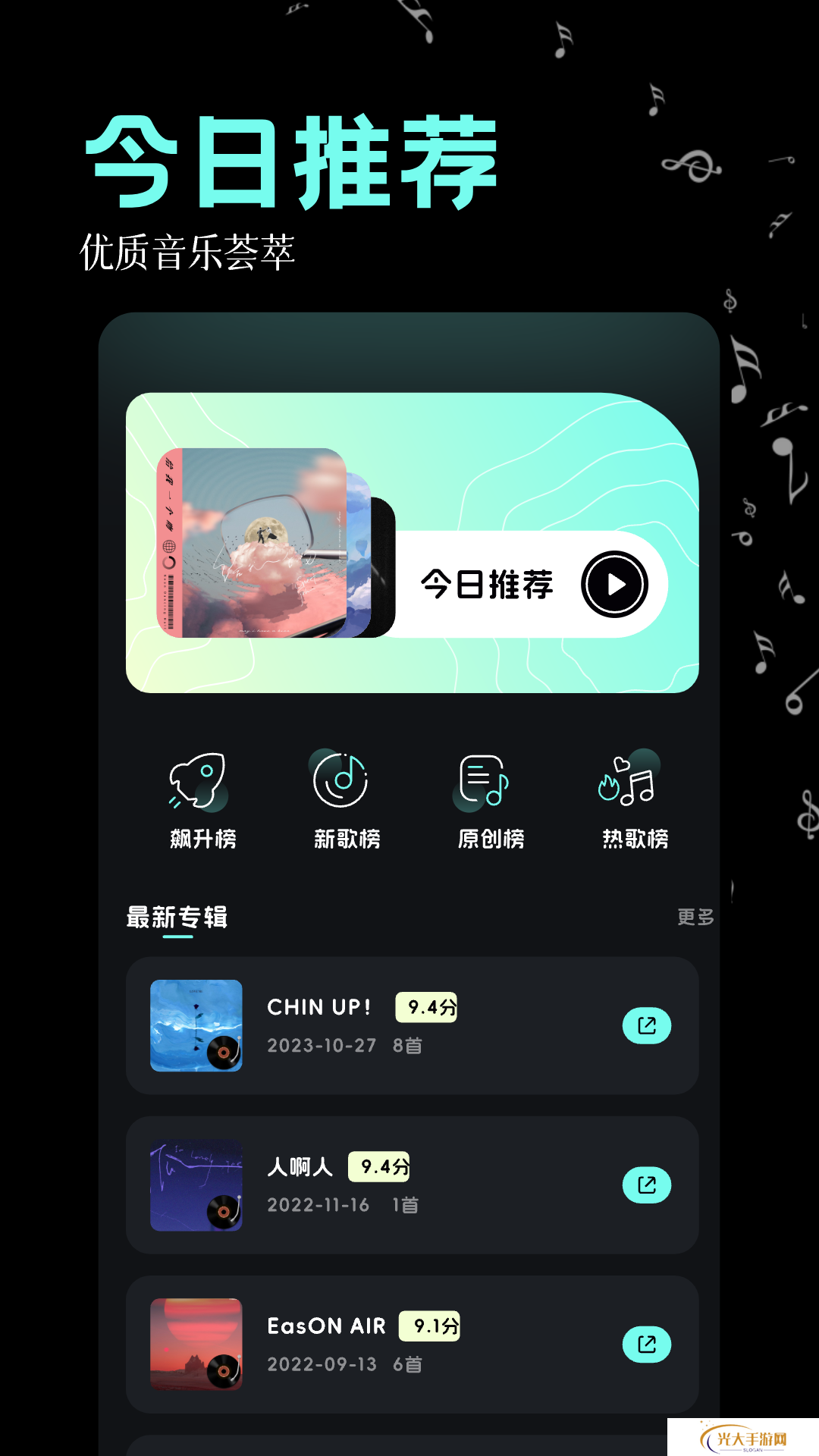 3.《九酷音乐》3.6亿曲库覆盖全语种,首创的 "音乐宇宙" 视觉系统,滑动屏幕就能切换不同风格场景,特别推荐 "心情电台" 功能,输入关键词秒变专属BGM。