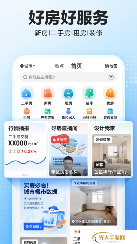 5.《安居客》一款老牌房产平台,新房二手房资源丰富。推出的 "安选房源" 服务,承诺虚假房源赔付100元。独创的 "房价走势" 功能,能查看小区近半年价格波动。