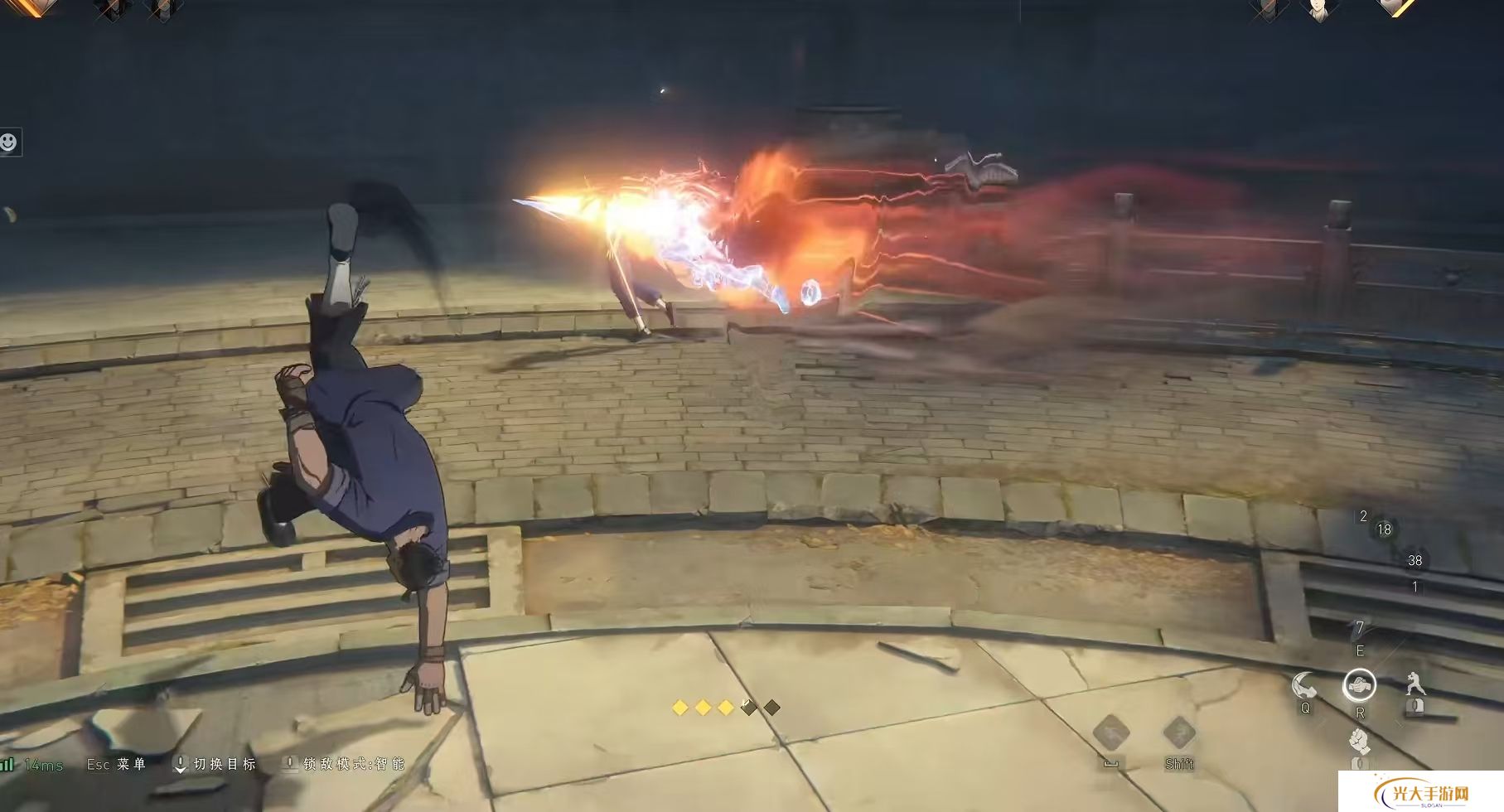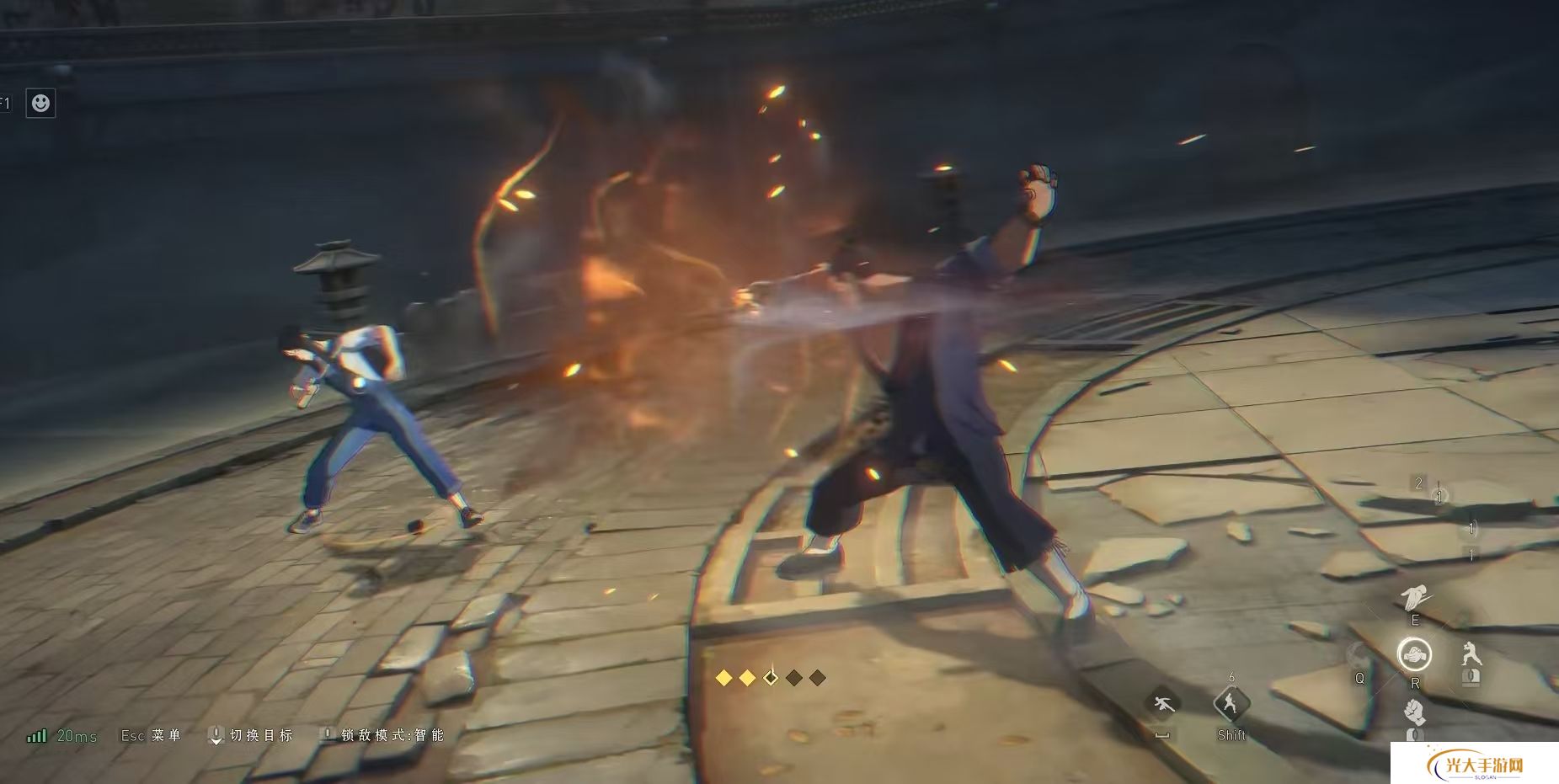 二技能穿云拍岸,能够将金光凝练出双手将敌人抓取,这一步要使用控鹤擒龙使用出来。三技能就是绝招,向敌人挥出重拳造成大量附加伤害。知道荣山技能的效果和力量,我们就可以使用连招了。通用连招是伤害技能+绝技,具体是打出普攻3a取消不要接4a再继续3a,后接一个二技能这里要取消后摇接4a击飞。