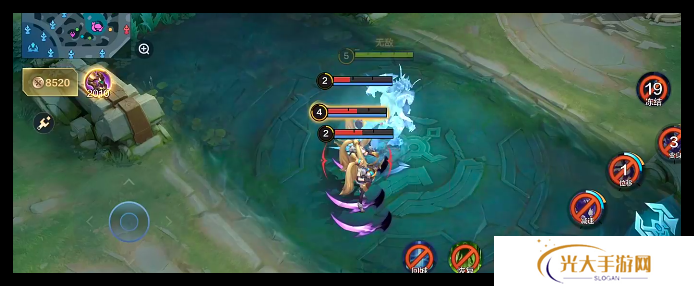 除此之外还可以利用2技能可以一次性叠满多层被动的机制,去打一个“2A”的小连招,预期好的话很容易就能打出被动的掉血机制。