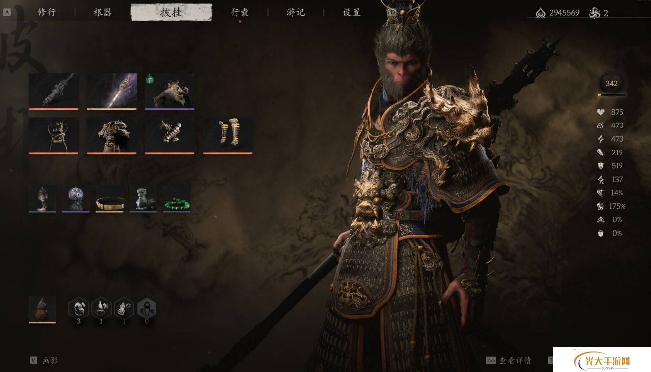 没了磬锤的棍势获得识破打起来没那么爽快流畅,所以披挂跟精魄我选择能攒棍势的用,地狼跟藏风两件让混铁棍打起来棍势也不会太缺,头饰三山,手臂赭黄,再打出boss小硬直的情况下,我四豆戳棍都是不打凤穿花的,选择蓄力直出,吃上赭黄的暴击率加成。