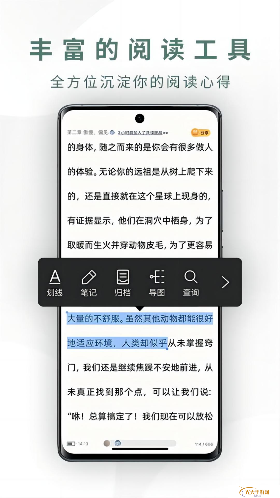 3.《藏书馆》如果大家平时阅读的时候喜欢做一些笔记,那么就可以试试藏书馆,在这里不仅给大家提供了丰富的阅读资源,而且大家是可以进行标注的,比如一些比较喜欢的句子就可以进行划线处理或者是进行笔记标注。