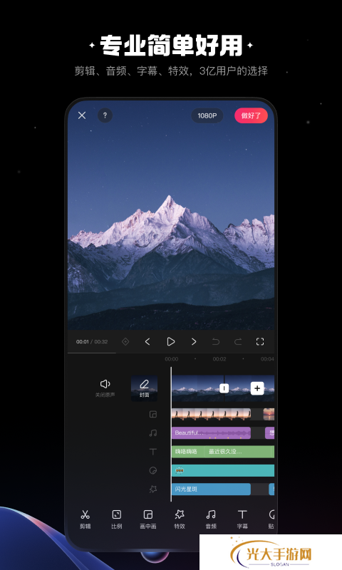很多剪辑软件中非常多的剪辑以及特效都需要收费使用,在这款剪辑工具中小伙伴们可以免费使用非常多好用的功能,小伙伴们可以选择一件出片,工具将会根据视频的内容推荐最适合的bgm。