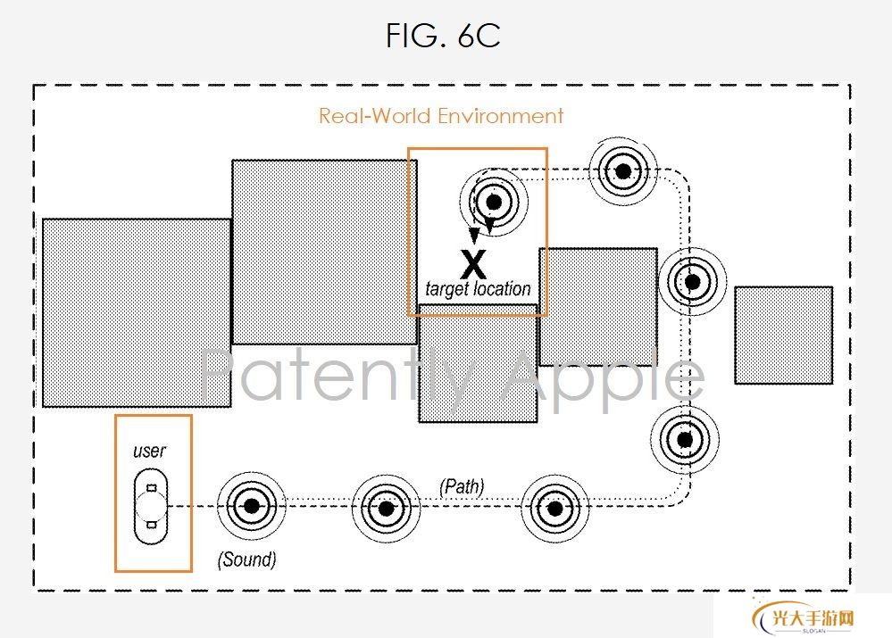 根据专利描述,该系统通过双耳音频设备播放方向性音频,为用户提供导航信息,用户无需依赖语音指令,而是通过音频的方向和距离感知路径。