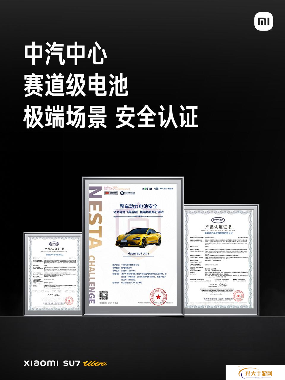 值得一提的是,基于「防弹涂层」的强大性能,小米 SU7 Ultra 还成功通过了中汽中心动力电池(赛道级)极端场景串行测试,并获得了《新能源汽车底部刮底防护认证》。