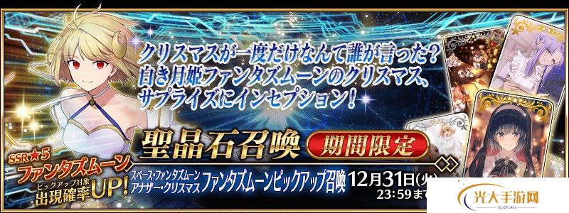 本次「太空・幻想之月 另一个圣诞节 幻想之月 PICK UP 召唤」期间限定卡池于日本时间 2024 年 12 月 25 日 00 : 00 至 12 月 31 日 23 : 59 开放。