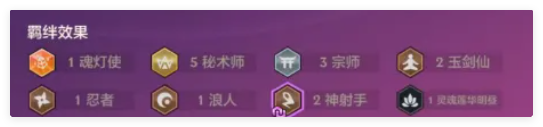 1魂灯使、5秘术师、3宗师、2玉剑仙、1忍者、1浪人、2神射手
