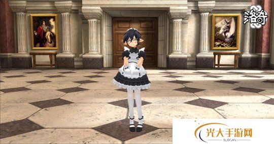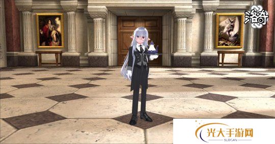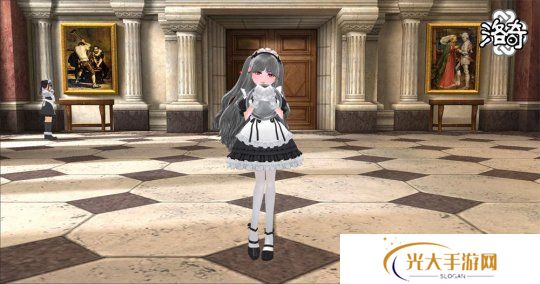 埃莉瑟的服饰简洁却不失高贵,精致的黑色蕾丝在袖口和领口处若隐若现。细致的刺绣沿着裙边延展,给人一种低调的优雅感。女仆与管家们安静地站在角落中,默默地执行着自己的职责。
