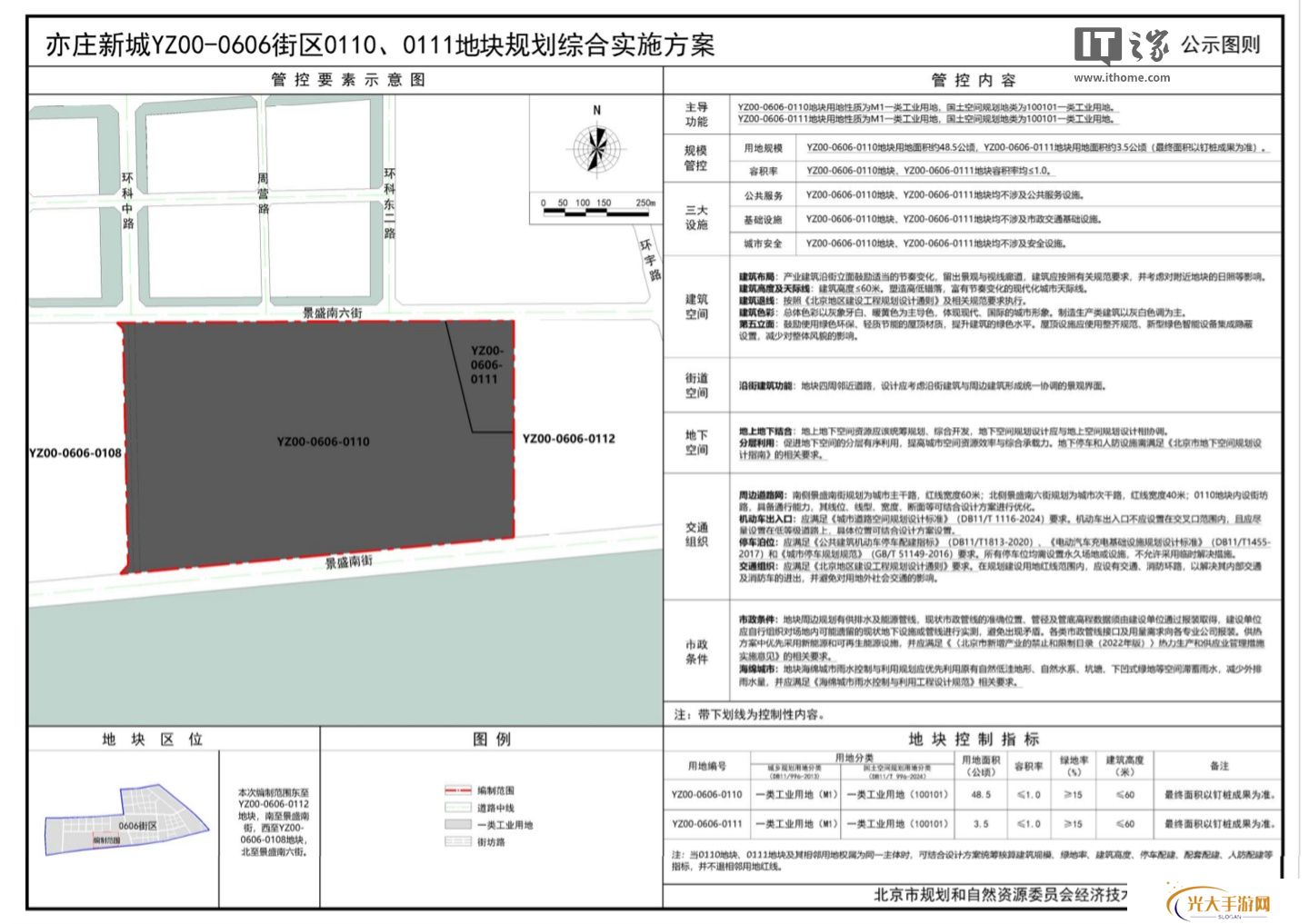 本站 3 月 13 日消息,北京市规划和自然资源委员会经济技术开发区分局 3 月 11 日发布《关于亦庄新城 YZ00-0606 街 0110、0111 地块规划综合实施方案》的公示。
