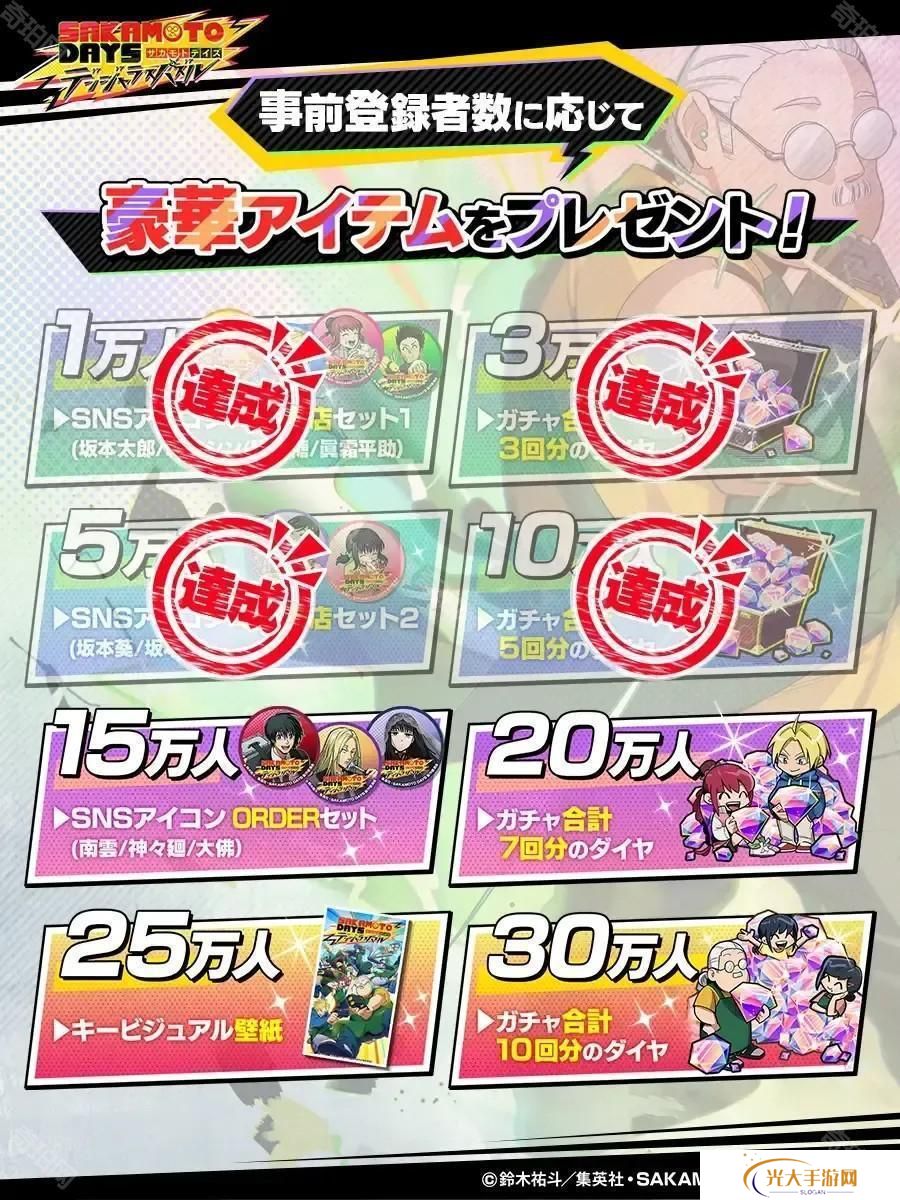 官方指出,玩家将可收集《SAKAMOTO DAYS 坂本日常》中的角色打造专属队伍,并透过直觉与简单操作,在关卡中击败来袭的 100 名杀手。此外,游戏中也收录了高品质且精美的角色插图,满足喜爱的粉丝们。