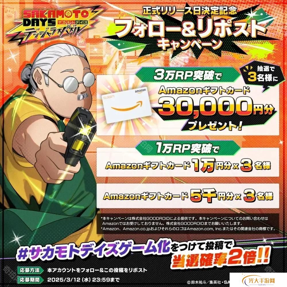 官方表示,为纪念游戏正式上线日确定,官方 X 现正举办转发抽奖活动,将根据转发数量赠送 Amazon 礼品卡。此外,目前事前登录已突破 10 万人,将赠送游戏内道具感谢玩家们的支持。