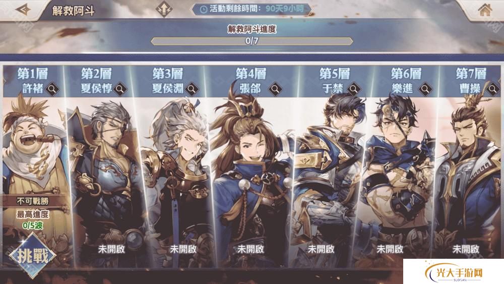 城主需挑战 7 层关卡,根据每层关卡不同的设定需求调整阵容配置。每通关一层后,即可直接获取 160 个雷霆赵云碎片。通关 7 层后,则可使用获取碎片将雷霆赵云升至最高培育状态 —— 五火!还等什么?快来解决阿斗吧!