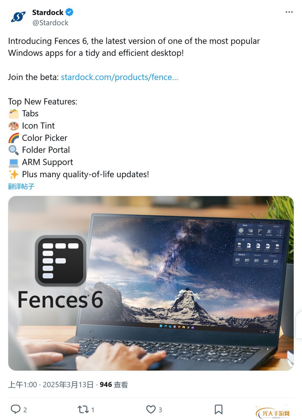 本站 3 月 13 日消息,科技媒体 NeoWin 昨日(3 月 12 日)发布博文,报道称 Stardock 宣布其 Windows 10、Windows 11 桌面管理软件 Fences 下载量突破 2000 万次的同时,推出全新的 Fences 6 测试版。