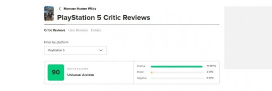 《怪物猎人:荒野》即将在北京时间2月28日发售,该作媒体评分现已解禁,Metacritic目前共收到130+个评论,其中120个好评、2个中评,8个暂未给出评分,PC版均分88分,XboxSeriesX|S均分89分,而PS5均分高达90分。