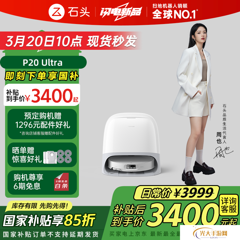价格方面,石头 P20 Ultra 首发价 3999 元,上下水版本首发价 4599 元,国补后售价为 3400 元起。