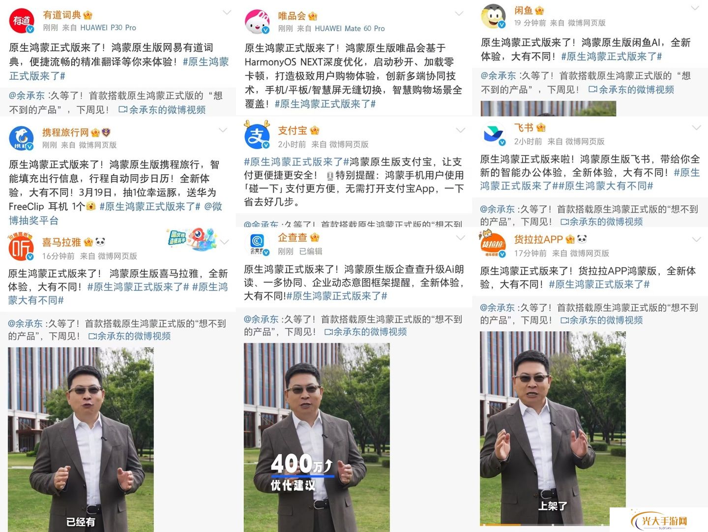 截至发稿前,已经有近百家鸿蒙生态伙伴转发互动,包括爱奇艺、百度、百度地图、百度网盘、百词斩、哔哩哔哩、地铁跑酷、钉钉、酷狗音乐、开心消消乐、航旅纵横、QQ 音乐、蜻蜓 FM、贪吃蛇大作战、腾讯新闻、UC 浏览器、唯品会、网易有道词典、喜马拉雅、闲鱼、携程旅行、美颜相机、酷我音乐、Keep 等众多生态合作伙伴,充分体现出鸿蒙生态伙伴们对原生鸿蒙正式版到来的期待与积极支持的态度。