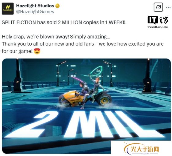 本站 3 月 14 日消息,开发商 Hazelight Studios宣布,双人合作游戏《双影奇境》首周销量破 200 万份。
