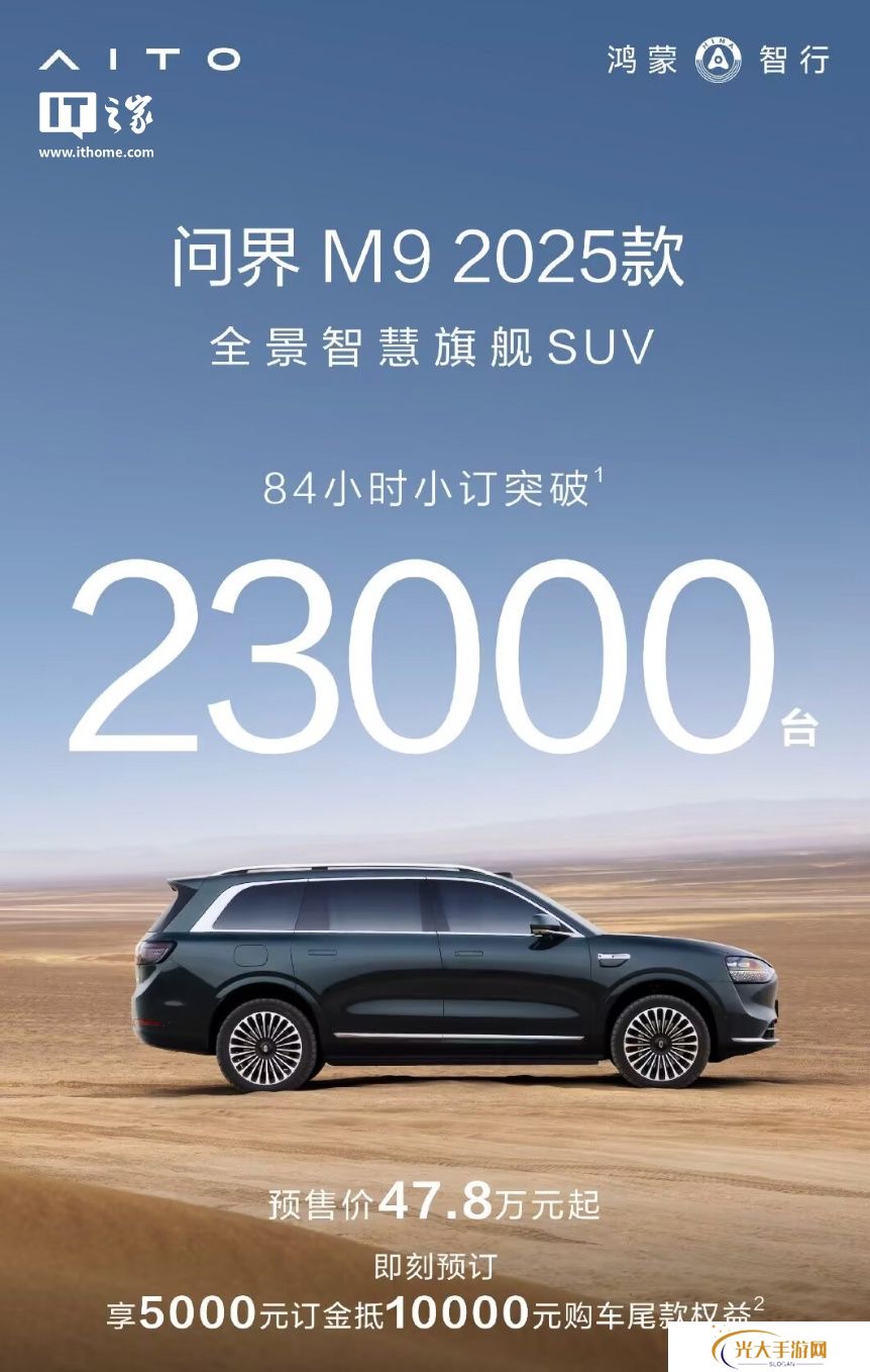 根据本月(3 月 9 日)最新公布的数据,“家庭智慧旗舰 SUV”问界 M8 车型 84 小时小订突破 4.7 万台、“全景智慧旗舰 SUV”问界 M9 车型 84 小时小订突破 2.3 万台。