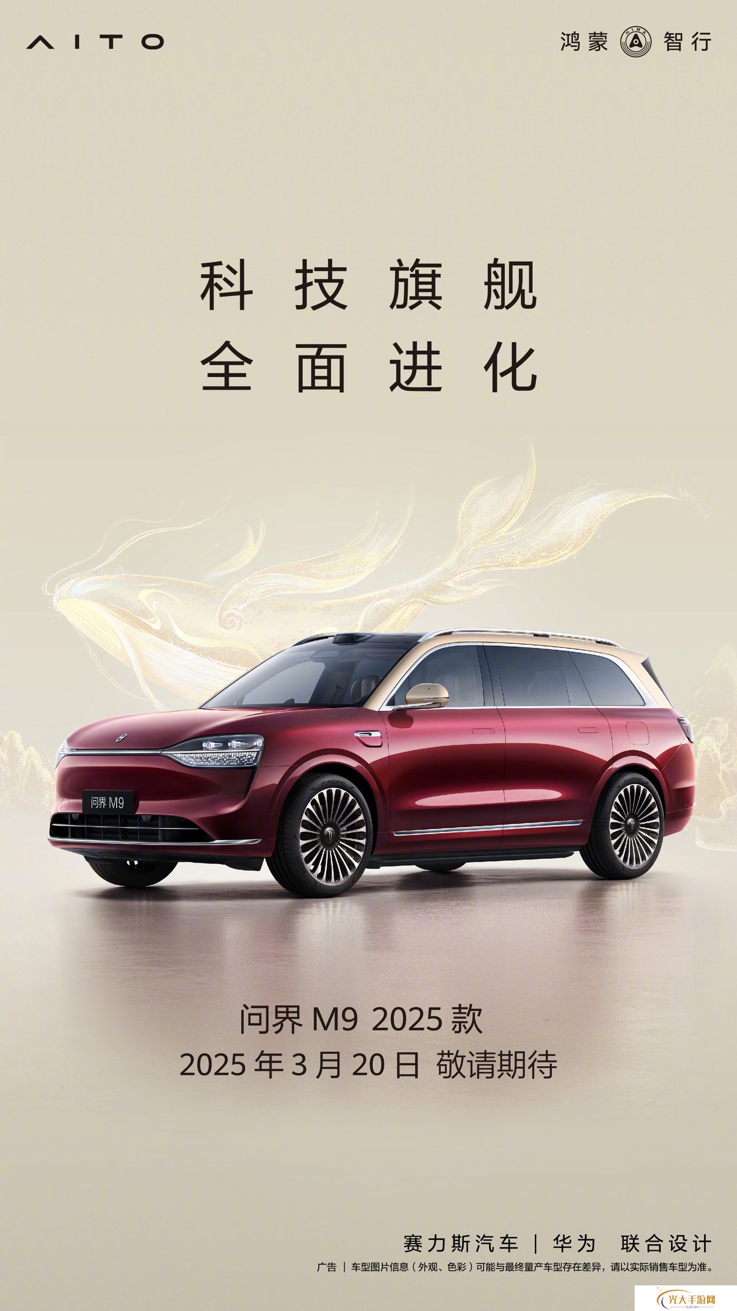 本站 3 月 13 日消息,鸿蒙智行官方微博今日宣布,问界 M9 2025 款“全景智慧旗舰 SUV”汽车将在3 月 20 日亮相。