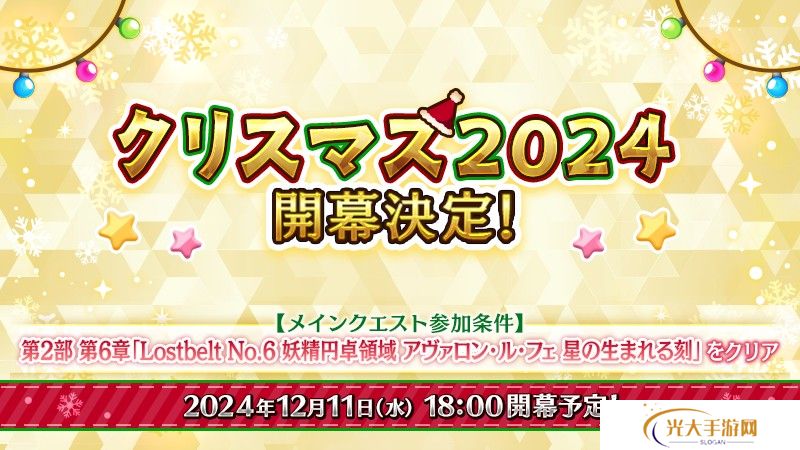 FGO PROJECT(Notes、Aniplex,Lasengle)旗下智慧型手机 RPG《Fate/Grand Order》日版,官方在2024年12月4日预告自 12 月 11 日举办期间限定活动「圣诞节 2024」。