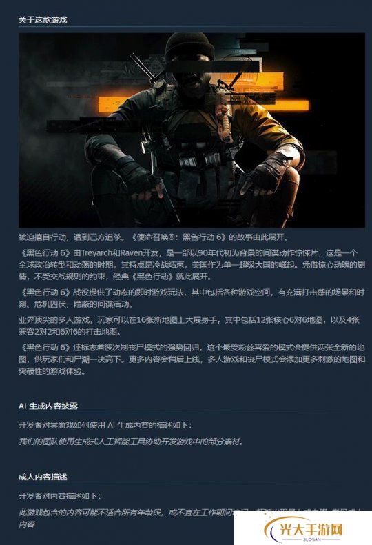 日前,动视在《使命召唤:黑色行动 6》在Steam的商店页面上,添加了对AI内容使用的提示。其中提到:“我们的团队使用生成式人工智能工具协助开发游戏中的部分素材。”