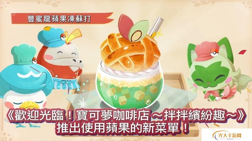 官方表示,《欢迎光临!宝可梦咖啡店 ~拌拌缤纷趣~》中将登场新菜单「丰蜜龙的苹果果冻汽水」,这款菜单在宝可梦咖啡店中也可以品尝到。