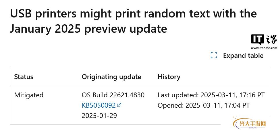 本站 3 月 13 日消息,微软公司于 3 月 11 日更新 Windows 健康控制台,承认适用于 Windows 11,于 2025 年 1 月 29 日发布的可选更新 KB5050092 存在 BUG,导致部分打印机出现乱码问题,主要影响支持双模式打印(USB 打印和 IPP Over USB 协议)的设备。